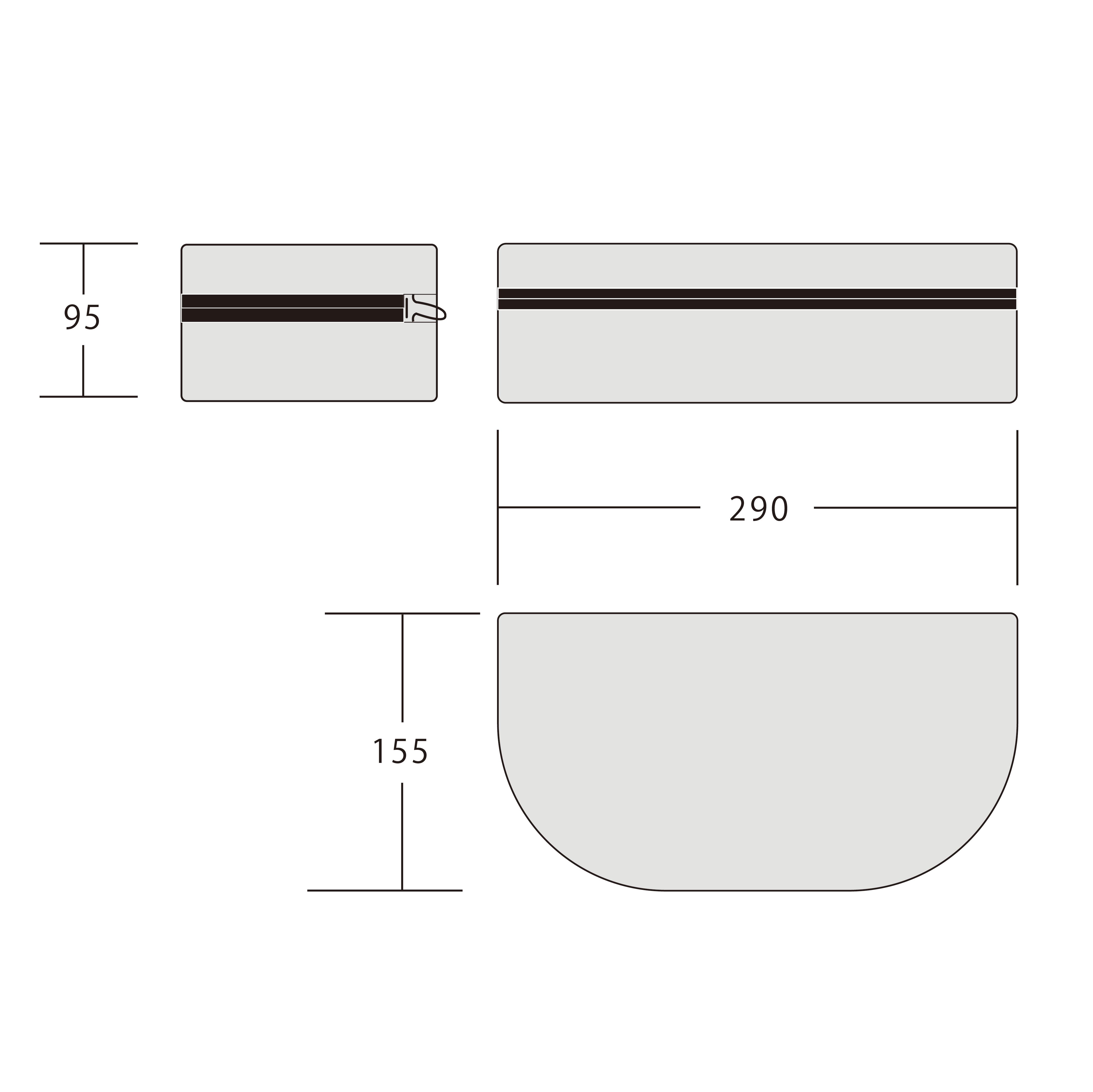 Dimensions. W290mm ✖️ D155mm ✖️ H95mm